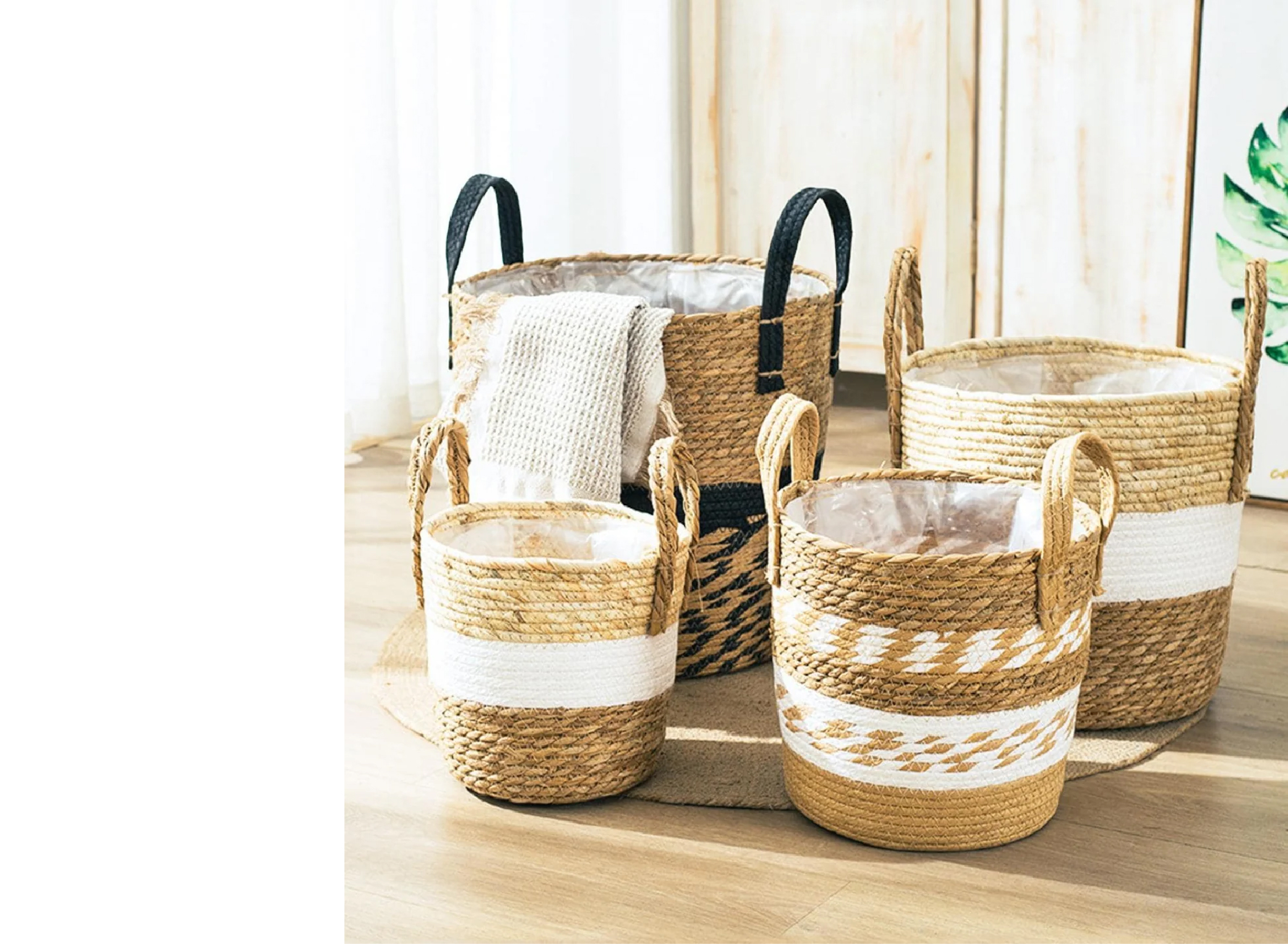 סל קש טבעי דקורטיבי עיטור לבן