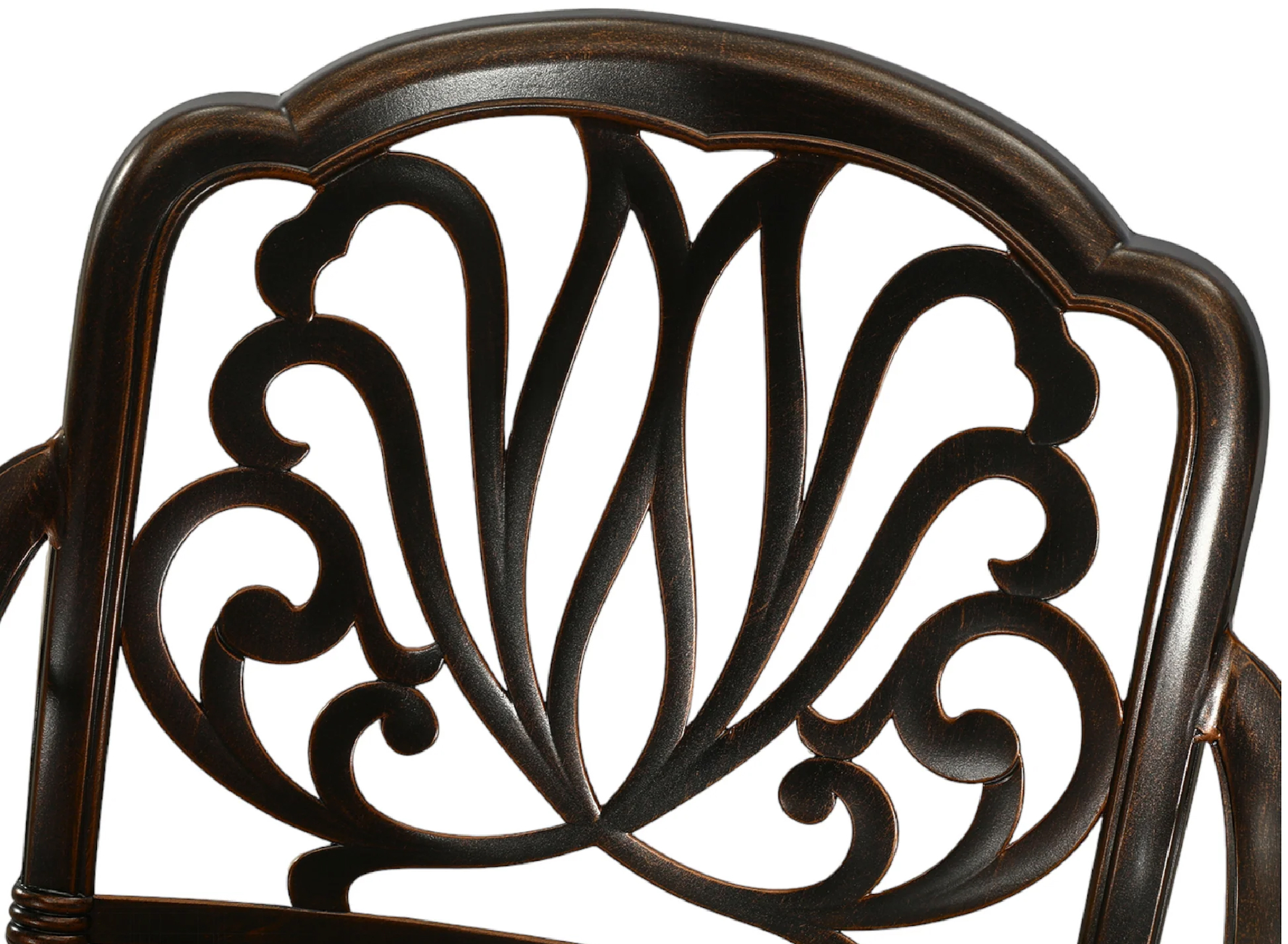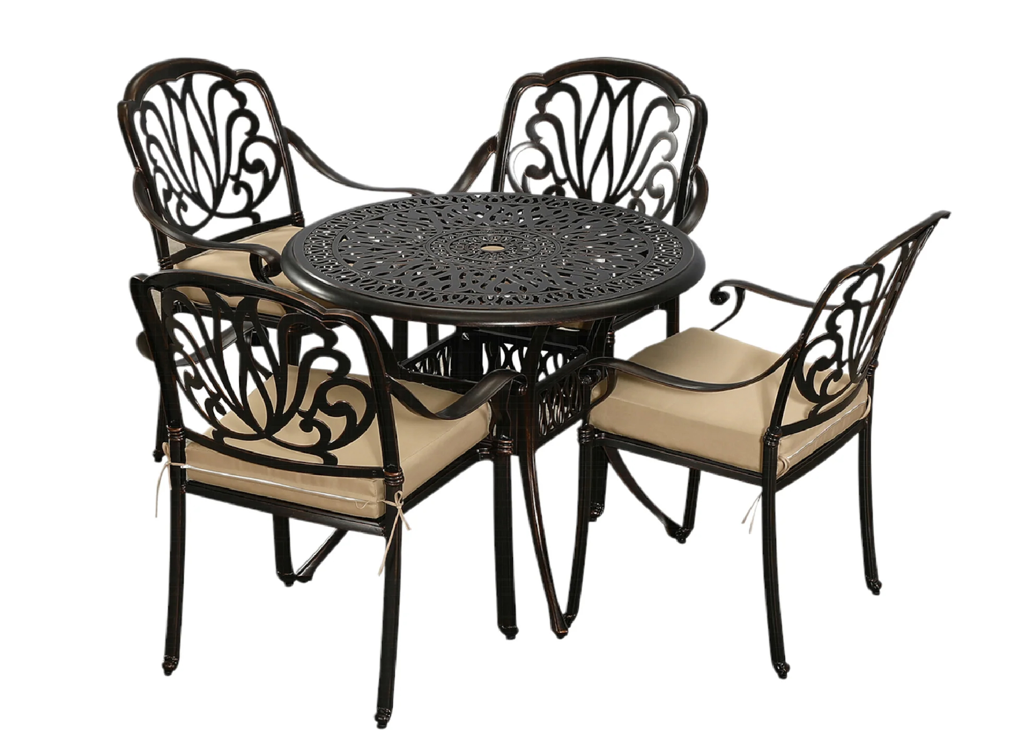 פינת אוכל עגולה מעוצבת בסגנון לובר עם פרזול מיוחד הכוללת 4 כסאות עשויה מאלומיניום יצוק.