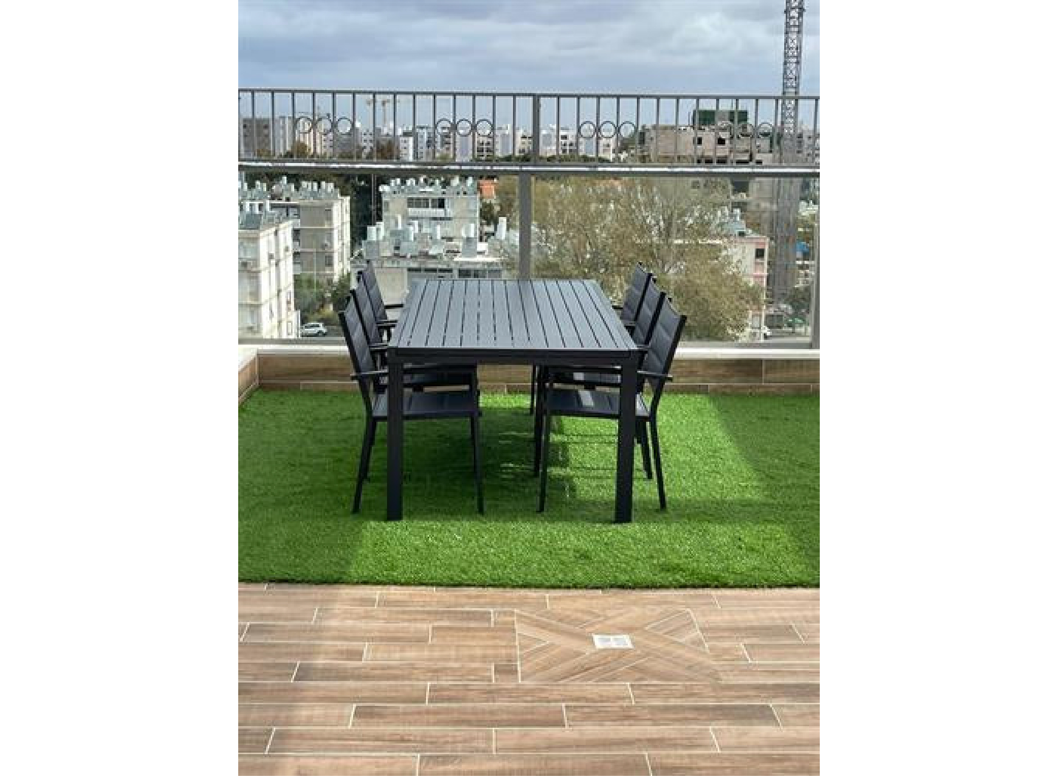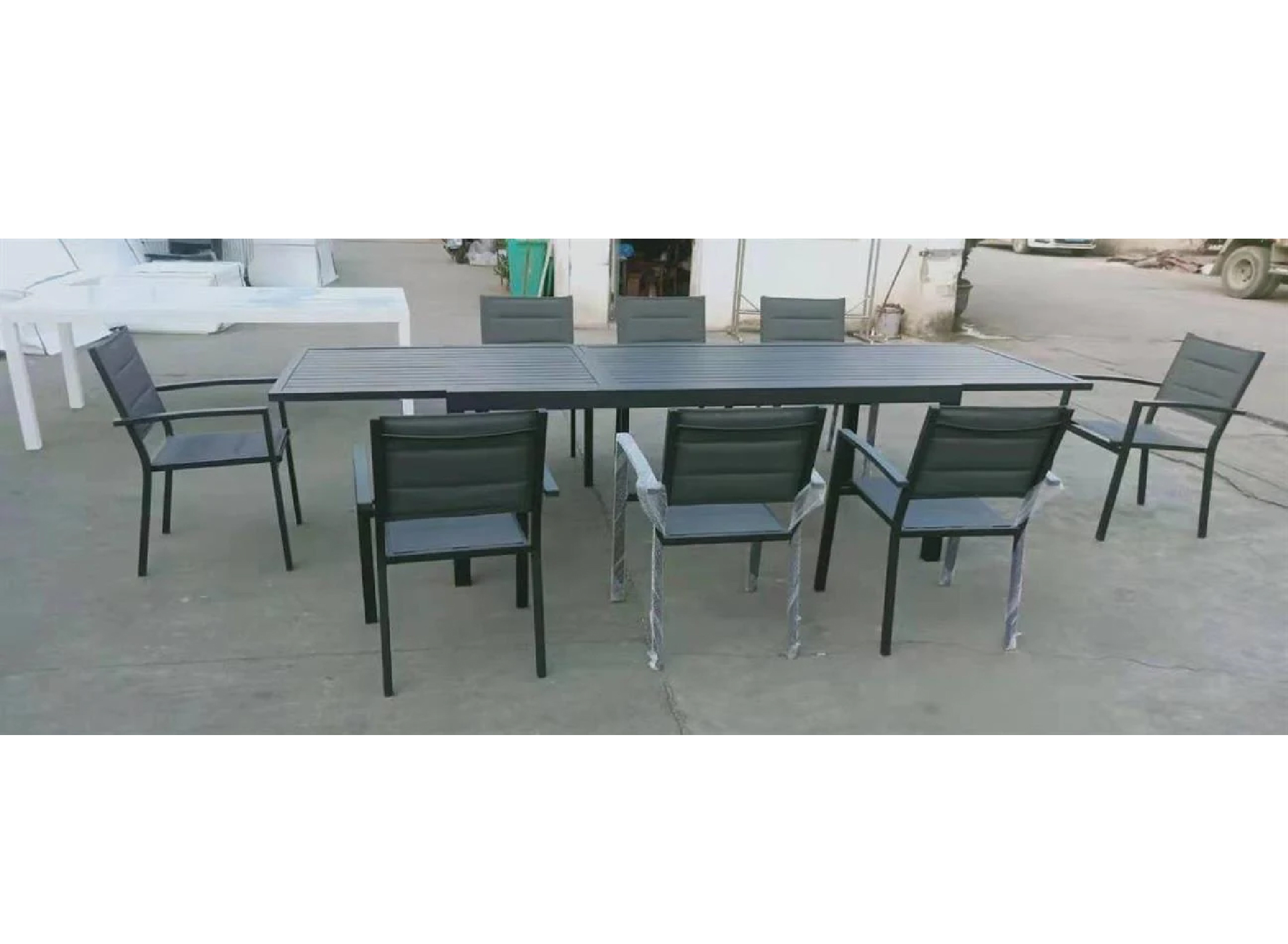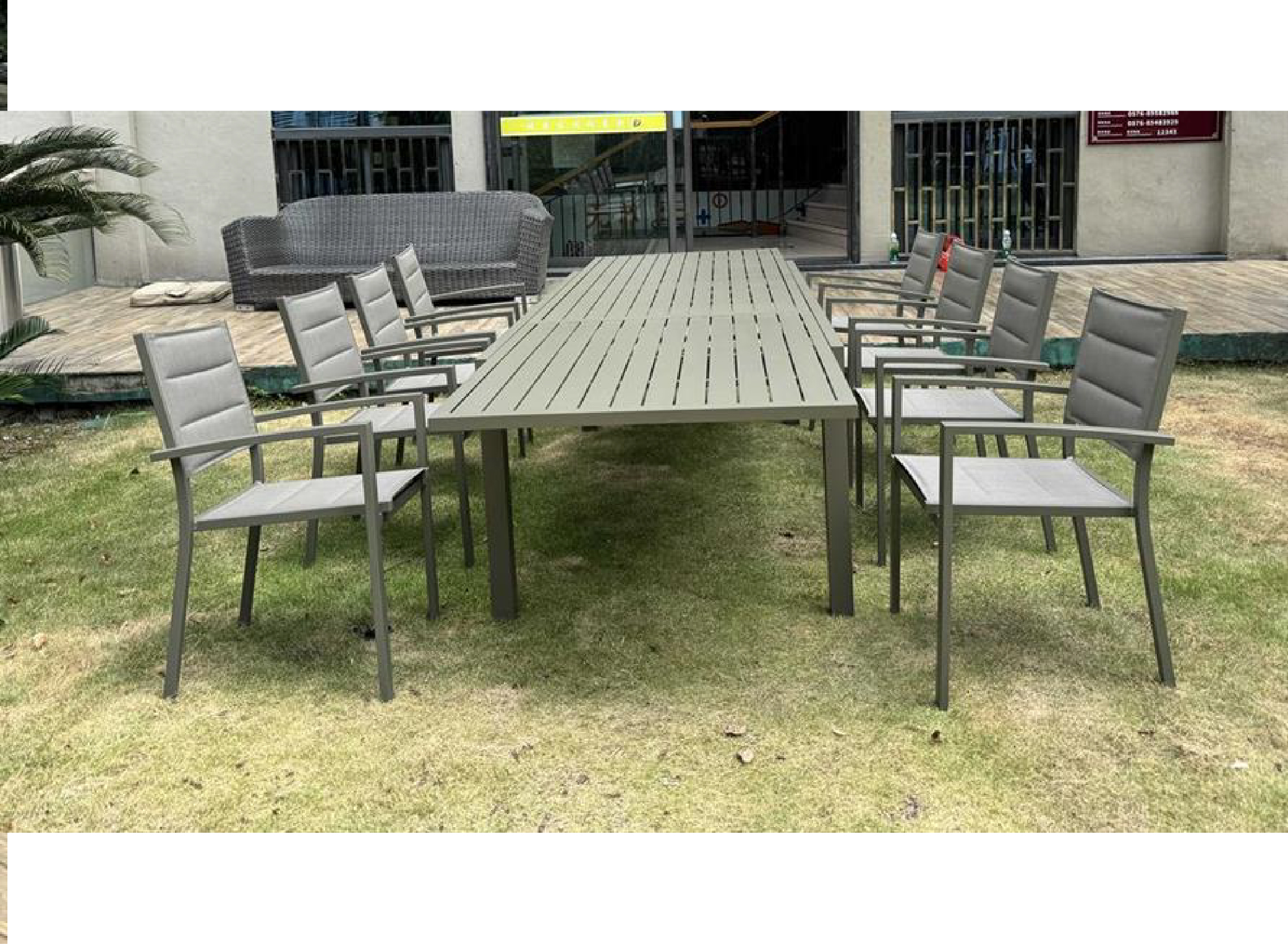 שולחן גינה/מרפסת נפתח ל-3.2 מ' + 6 כיסאות (שמפניה/אפור)