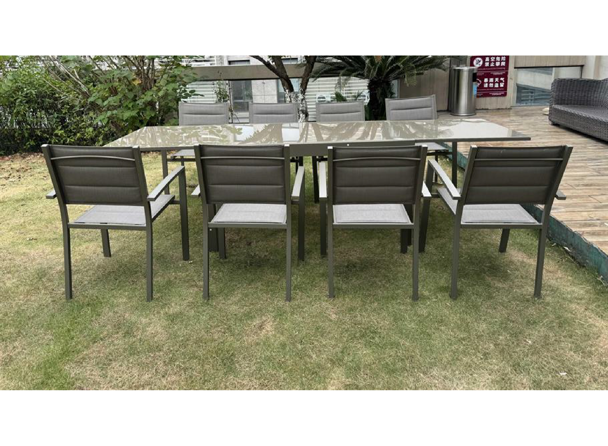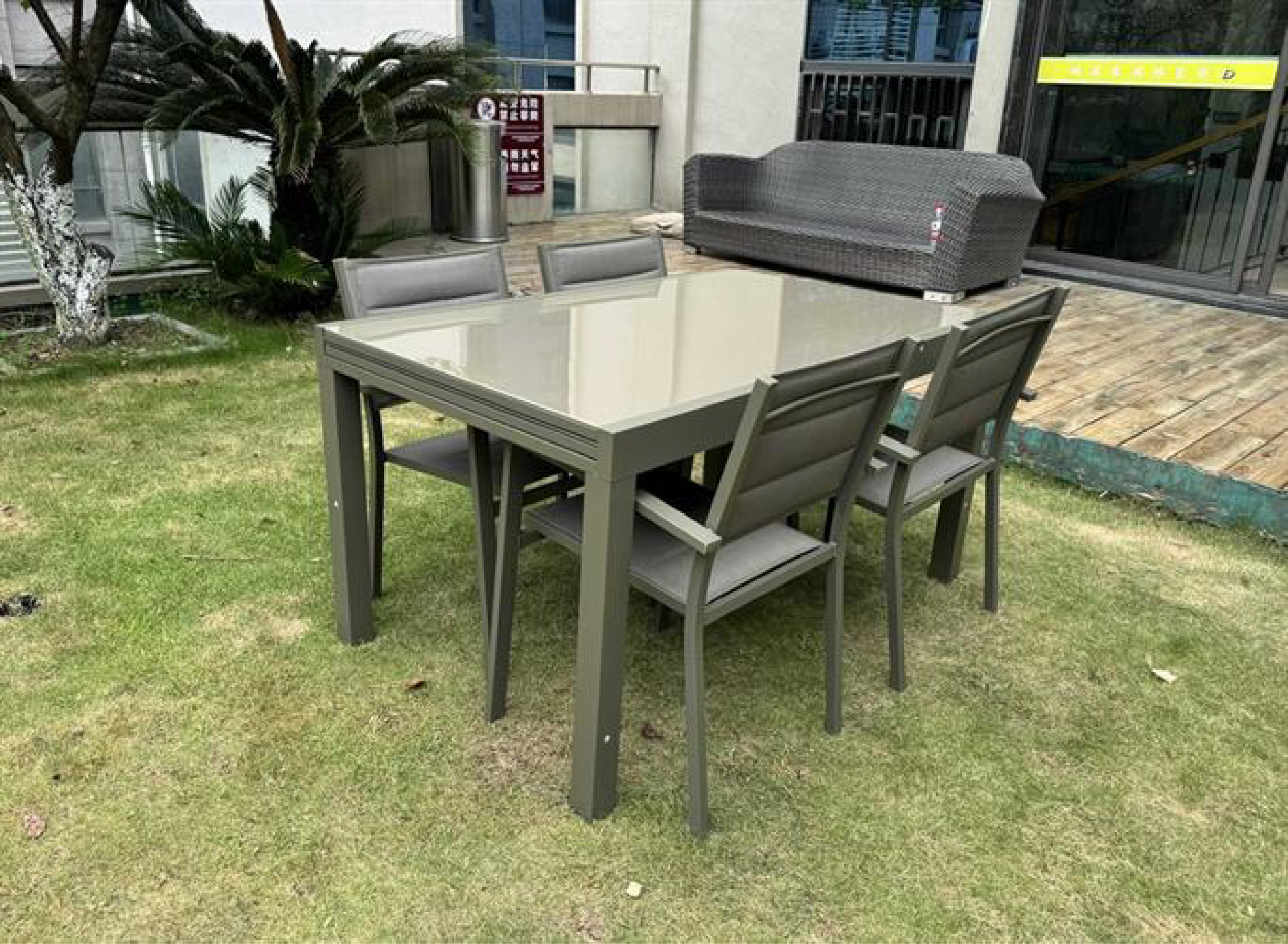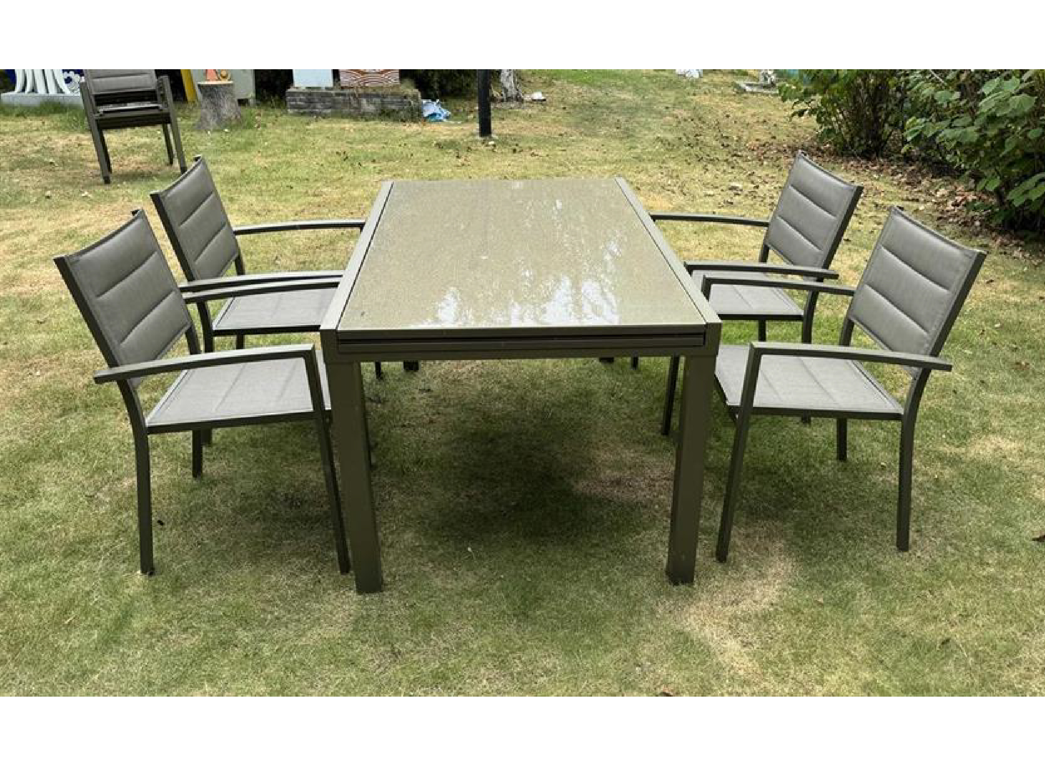 שולחן נפתח ל2.8 מ׳ אלומיניום טופ זכוכית + 4 כסאות צבע שמפניה